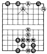 棋势与对策:黑方兵临城下,双马三卒要杀。红方则用献的兵法,献兵将军,献车将军,连献三子,以献取胜。