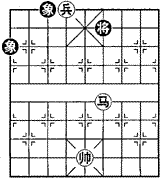 此局红方马兵有控制黑方双象的机会而巧胜。一般情况下,马底兵是无法取胜双象的。