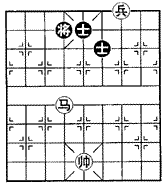 此局红方需运兵至九宫 五?十位控制双士不能回底线,再配合红马禁其将士的活动,以兵换士或白吃黑士