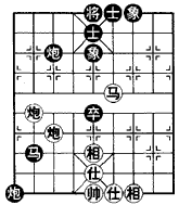 “百岁杯”象棋大师邀请赛,河北李来群对黑龙江赵国荣弈至36回合形势如图A。初看似乎黑不过一卒之忧,但实际上黑前方马炮已构成强大的攻击力,红颇为难应。实战中黑借先行之机,连续运马,用“马后炮”,困住红八路炮,小卒及时赶到,擒子获胜。