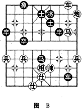 如(图B),红再次平生二路,由黑无法解决红马二进三马后炮的杀势,红胜。