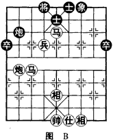 如(图B),黑去马后,红马炮兵必胜黑炮单缺象。