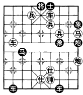 如误走车八平五,炮9平5(如马3退5,炮一平五,马5退6,车四平五,红胜),车四进一,将5平6,兵四进一,将6进三,黑胜。