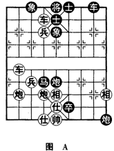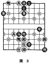 如(图B),红方通过解杀还杀,连弃两车,巧用兵胜。