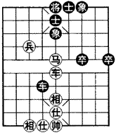 图是红方车马兵分两翼夹击,针对黑方右翼空门紧逼制胜。着法红先:
