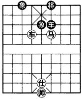 车双象对车马,守成和局的窍门,是车必须守护在横线的第三路,如右面棋图形势,保相跟马,牵制马的活动,使独车不能成事。