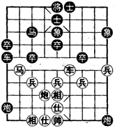 如图形势,红方先行。从双方子力价值来看,黑方净多1炮,占物质优势。红方在劣势情况下,只有发挥先行之利,抓住对方防守的弱点,发动强于失炮价值的攻势,才能解危脱困。