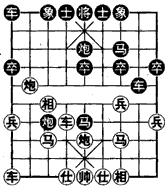 (棋例)1984年团体赛中广东吕钦对火车头郭长顺,弈至第15回合时的形势如图。双方大子齐全,黑方多一中卒,巡河车捉炮,似乎是对抢先手的形势。实战中红方妙演“远交近攻”之计,采用“利从近取,各个击破”的原则进行围歼,生擒黑炮取得胜利。