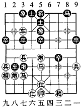 至此,黑方布局成功,红方如续走车七退二,则卒6平5得回失子;又如续走马五退六,车7平4,亦得回失子,多卒占优。