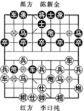 如图,双方布局不落常套,灵 活运子。现进入中局,黑方进车 升炮,摆开反击架势。