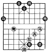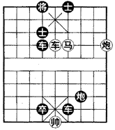 棋势与对策:黑方小卒剜心,车卒要杀、红方先用马卧槽将,车将,抽将,吃士将,然后,用后的兵法,马后炮将,以后取胜。