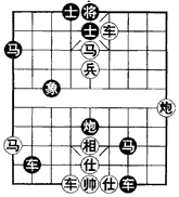 棋势与对策:黑方车捉士吃士要杀。红方先用炮将,马将,然后,也是用后的兵法,调炮,用马后炮将,以后取胜。