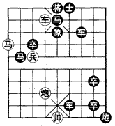 棋势与对策:黑方小鬼把门,两车要杀。红方则舍车穿心杀士将军,再舍车吃士将军。最后,用捣的兵法,直捣黄龙,以揭取胜。