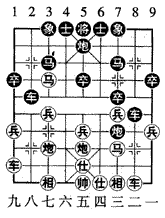 张:至此形成后补列炮对中炮的典型布局,这类布局对攻激烈,不易成和。