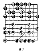 如(图5)形势,黑方主要有3种应着:(甲)车4进3;(乙) 车4进5;(丙)卒1进1。分述如下: