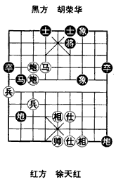 (图11)是1989年全国个人赛徐天红对胡荣华弈至33回合时的残局形势,轮到黑方走。虽然双方子力暂时相等,但黑子力分散,将位不安,处于下风,为此采取兑子谋和之策,着法黑先: